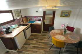 The stay on this barge is a clever mix between the modernity of the equipment and the charm of a natural setting. You will find everything necessary for optimal comfort, including a well-equipped kitchen and a cozy lounge to relax. Wi-Fi connection is included, allowing you to stay connected while enjoying the soothing setting of the island. The common areas, carefully decorated, are designed to create a cozy atmosphere where you like to spend time.